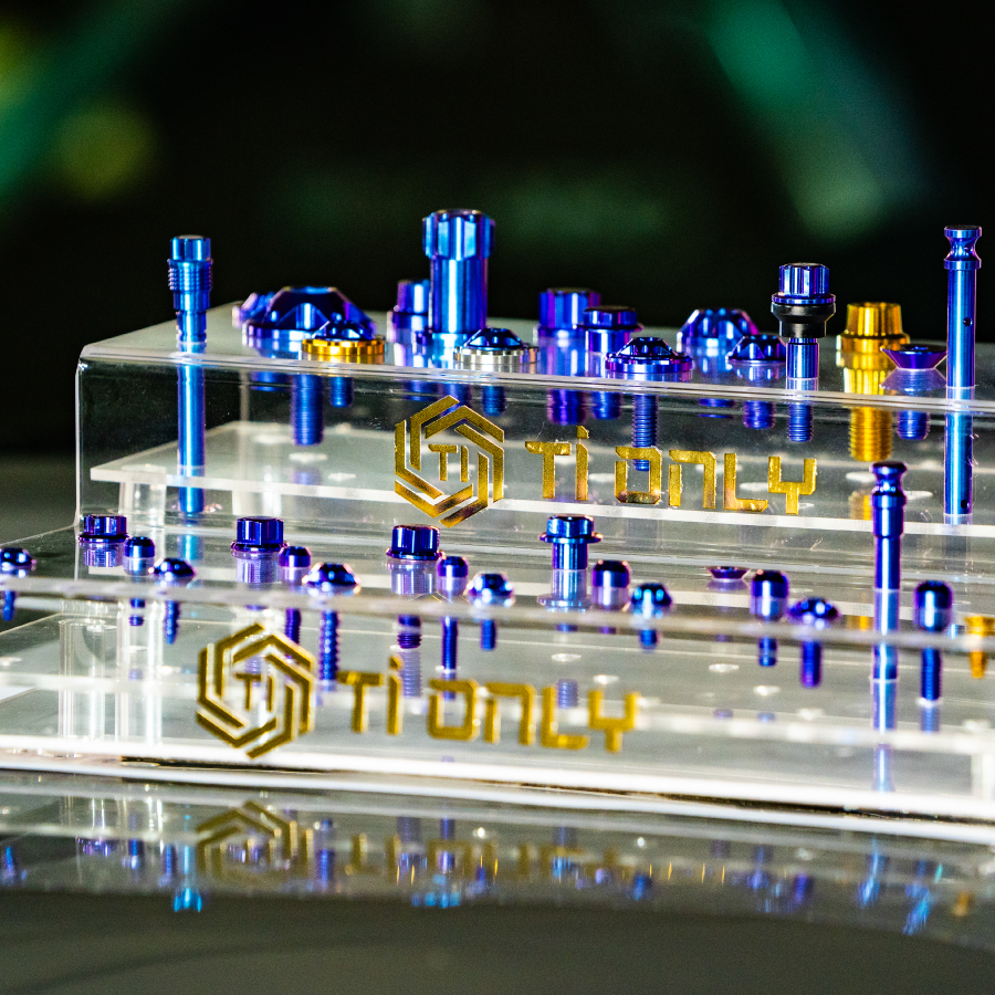 TiONLY 也在 2020 年全面開發專屬 TiONLY 螺絲造型,包括特外六角及五星造型款式,委外專業工廠訂製螺絲胚,再以熱鍛造製程與數位機械加工製造,讓螺絲更加亮眼的造型來迎合市場!